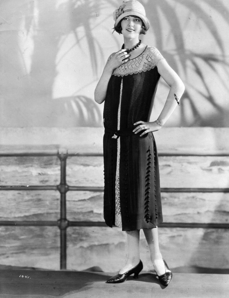 Carnelian, one of spring’s predominating colors composes this dainty after-noon dress of canton crepe. A collar and panel of lace gives it its cachet for lace we are told is to play quite an important part in the matter of dress decoration this year. described by Nancy Spence, March 19, 1925