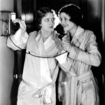 The Day Sisters – American acting siblings Alice (left) and Marceline Day standing in their dressing gowns by a telephone, demonstrating what happens when the studio puts in a 9 o’clock call for work. photo by Margaret Chute, circa 1923