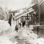 Blizzard of 1888, looking west on 11th Street from Waverly Place, March 13, 1888. Gelatin silver print. Photograph by Hegger. New-York Historical Society # 3690