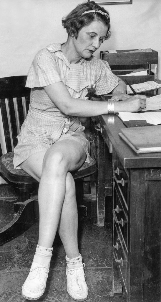 Alameda Aviatrix Patricia Kendall, secretary for the R. P. Bowman Company at the Bay Airdrome. (Oakland Tribune Photo) February 13, 2014