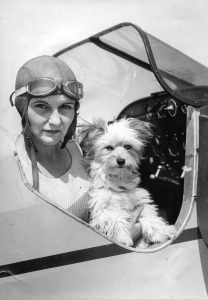 September 5, 1933 – Pat Kendall and her pet poodle, Goofus, who likes to fly and has spent more than 100 hours in the air. (Oakland Tribune Photo) February 13, 2014