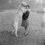 a nine-month-old Irish wolfhound with his owner E P Orpen at a Kennel Club show at Crystal Palace, Sydenham, London. photo by Walter Bellamy for the London Express – October 10, 1928