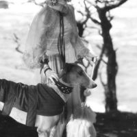 Mrs Adolphus Busch (Lilly Eberhard Anheuser in white dress, black hat) and Marion Davies (on the right), surrounded by numerous orphaned children, some of which are holding balloons. 1927