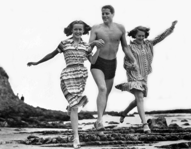 whataboutbobbed April 17, 2014 Anne Shirley, James Ellison and Ruby Keeler frolic in the sand and surf, 1938