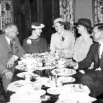 ’[The tour was] designed to make first the State and then the nation Preakness-conscious,’ The Baltimore Sun reported. In the photograph, Mrs. Lanaham, second from left, enjoys dinner at the Chester River Yacht Club in Chestertown with Mayor Jackson (left) and his wife, who is seated next to Chestertown mayor Phillip B Wilmer. Mrs W B Usilton III is the party’s other guest