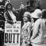Miss Evelyn Laye, an actress from London, speaks to a upper-class women election meeting in Tooting. She touts for the conservative candidate Sir Alfred Butt (on the left side). The election was on May 30th, 1930