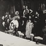Standing: Hans Arp, Jean Caupenne, Georges Sadoul, André Breton, Pierre Unik, Yves Tanguy, Cora, André Thirion, René Crevel, Suzanne Musard, and Frédéric Mégret.