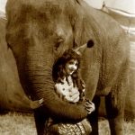 whataboutbobbed July 1, 2014 Madge Bellamy & Oscar the Elephant, one of her co-stars in the circus-themed film Soul of the Beast, California, 1923