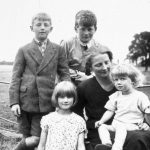 Arthur C(harles) Clarke (b 1917) was to become a leading science fiction writer, following a period of work in scientific research. Here, Arthur (top) is depicted with his mother, Mrs Nora Clarke (nee Willis), his sister Mary and his brothers Fred (left) and Michael. They are outdoors at Ballifants, the family farm in Somerset. At this time, the father was ailing from injuries sustained during the war. Mrs Clarke and her two eldest sons had to work hard on the farm to make ends meet. photograph by George James Sr, circa 1929