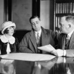 1922 photo pictures Mabel Normand, who at the time of the William Desmond Taylor murder was at the height of her career, being questioned by Asa Keyes (right), at that time district attorney of Los Angeles County, between them is seated Milton Cohen, Miss Normand’s attorney. Miss Normand was exonerated. Keyes now in Los Angeles county jail awaiting appeal from conviction of bribery and conspiracy has from his cell accused friend W. Richardson, former governor of California of shaking the bones of the Taylor case for political purposes