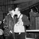 Ginger Rogers offers Harold Lloyd a kiss during a gala held in Hollywood to benefit The Red Cross, April 2, 1937. Lloyd gave $400 dollars to the charity association for this privilege