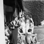 A Hollywood Party – The candid cameraman catches a group of Paramount Players and executives at Melville Shauer’s swimming party. In the group are – Mrs Julian Madison [Arline Nussbaum?], Alfred Delcambre, Katherine DeMille, Shauer, Ida Lupino, Clara Lou [‘Ann’] Sheridan and Eldred Tidbury [aka Donald Gray] – June 3, 1934