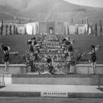 The Fanchon and Marco Girls, a vaudeville troupe, pose next to a cascading fountain in Monterey Park in 1930. Built originally as part of the Midwick View Estates housing development, the fountain today is part of Cascades Park. Here’s a present-day Google Street View of the same location: http://goo.gl/maps/UabRs