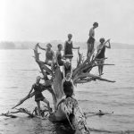 whataboutbobbed October 4, 2015 bathing beauties on large driftwood at Camp St. Albans, MaineĀ photo by Bert Call