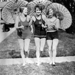 whataboutbobbed February 22, 2016 three young women sunbathing with sun umbrellas, in Chiswick, United Kingdom, circa 1920
