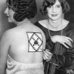 Who could think of a crossword in a situation like this? Surely not Lucille White, who is pointing to one symmetrical figure superimposed on another. Miss Dorothea Summers, a singer showing her latest puzzle. It has said to have made many a brain dizzy, the idea, of course, may possibly