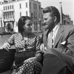 whataboutbobbed December 9, 2016 Kirk Douglas and Silvana Mangano take a water taxi ride on the Canal Grande, Venice, Italy, 1953