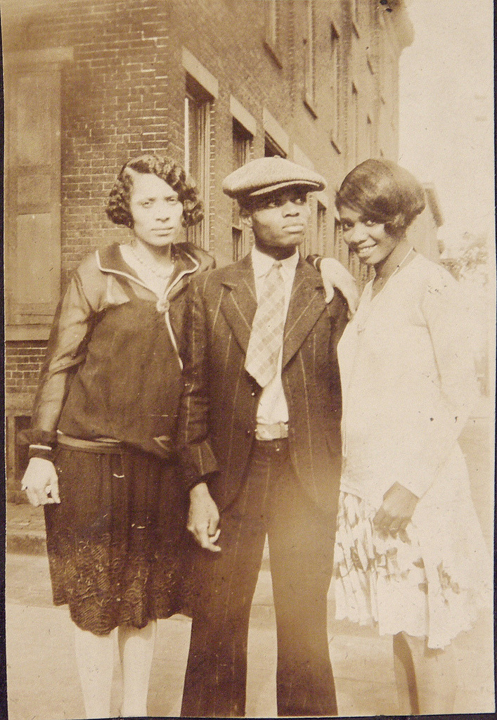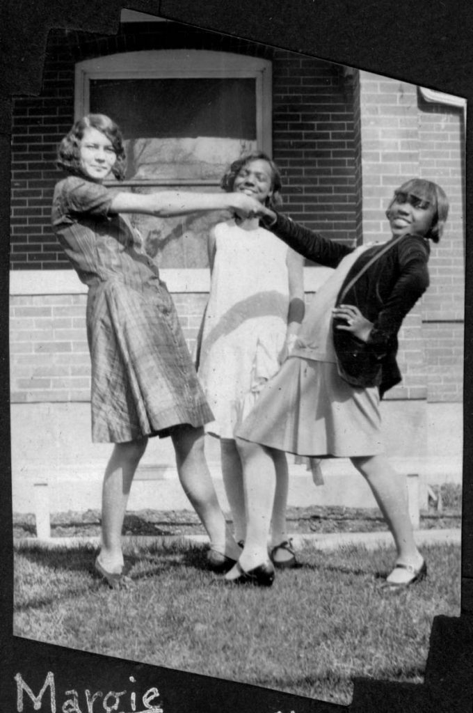 Margie, June and Charlotte, three teenage African American girls, pose in front of the home of Virginia Woodward, their Sunday School teacher, in Denver, Colorado. They wear dresses and stockings […]