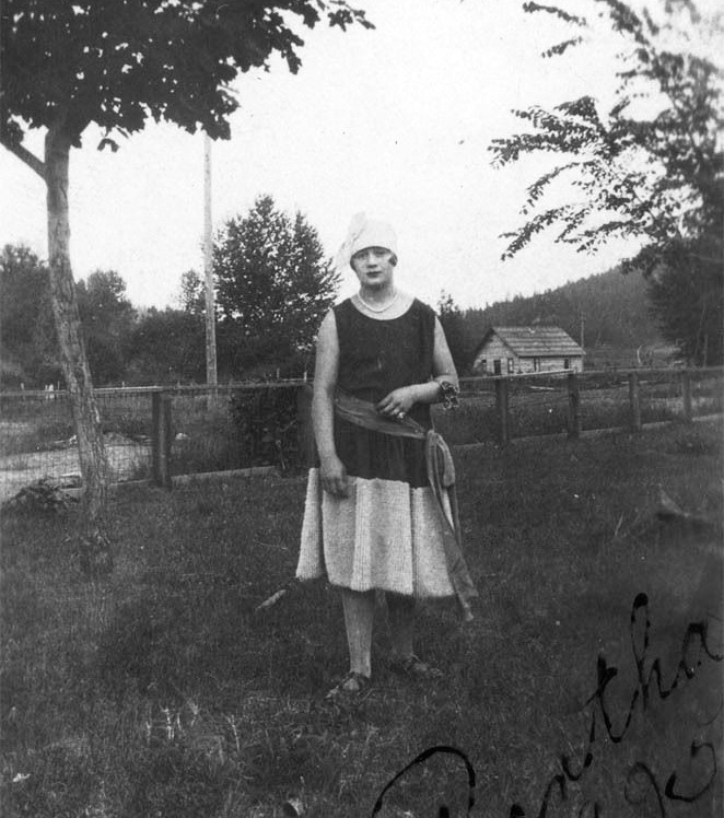 Jean and Myrtle Cheers listening to a crystal set radio in their backyard, Brunswick, Christmas 1923. The set was made by their brother Ronald Cheers, when he was 20