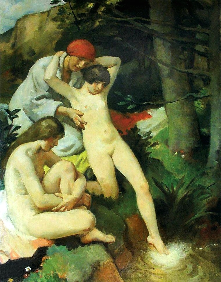 Mädchen beim Baden im Walde (Girl Bathing In The Forest) by Hugo Böttinger, 1924.