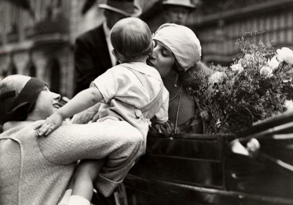 Princess Astrid gives a kiss to the little boy who had given her flowers, Namur, Belgium, 1929, by G Champroux