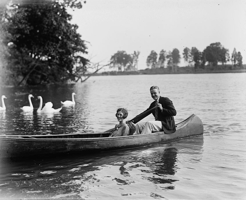 natgeofound: A couple in a boat paddle on a lily pond and collect flowers in the Kenilworth Aquatic Gardens in Washington DC, 1923. Photograph by Charles Martin, National Geographic