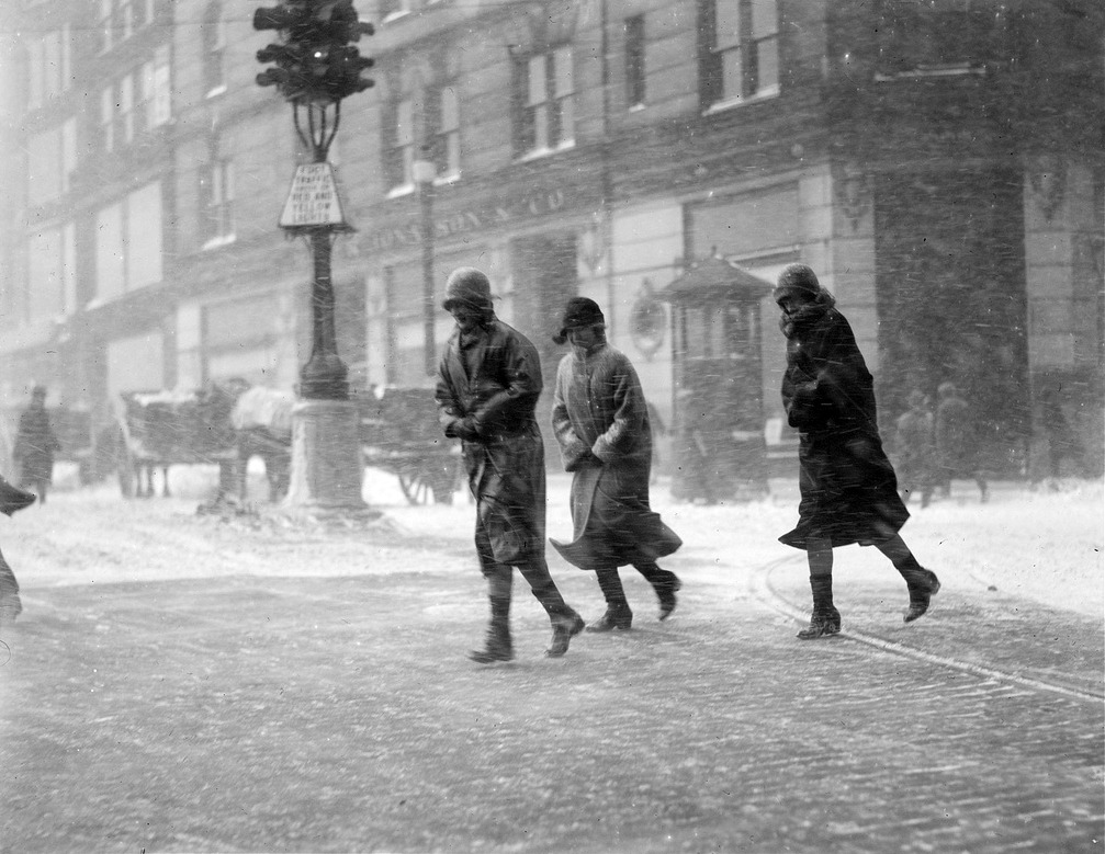 thinking of Boston… snowstorm in Boston, on the corner of Tremont and Boylston, by Leslie Jones, December 1930,