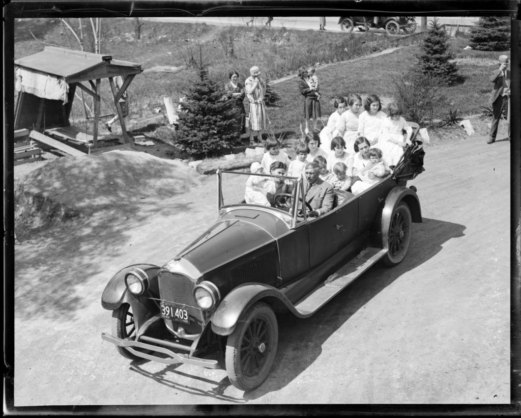historicaltimes: Family of thirteen children in a convertible, Boston Massachusetts, 1925. via reddit