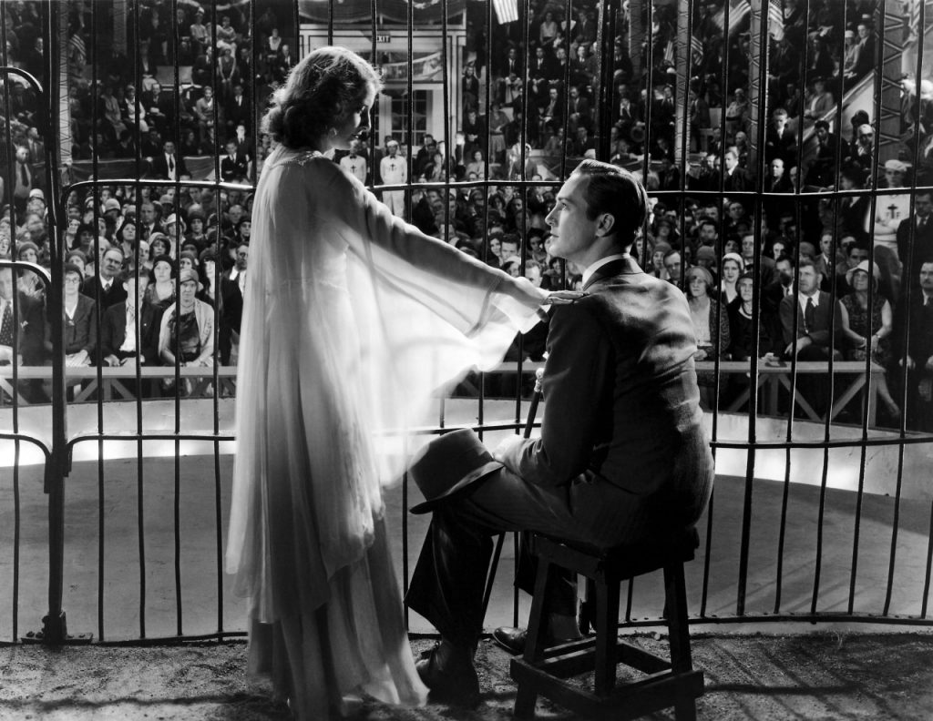 David Manners gets into Barbara Stanwyck’s cage, in 1931’s The Miracle Woman