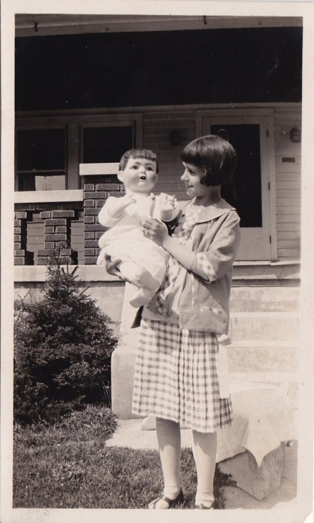 a girl (nick)named Peach with her doll, in Dayton, Ohio, circa 1923