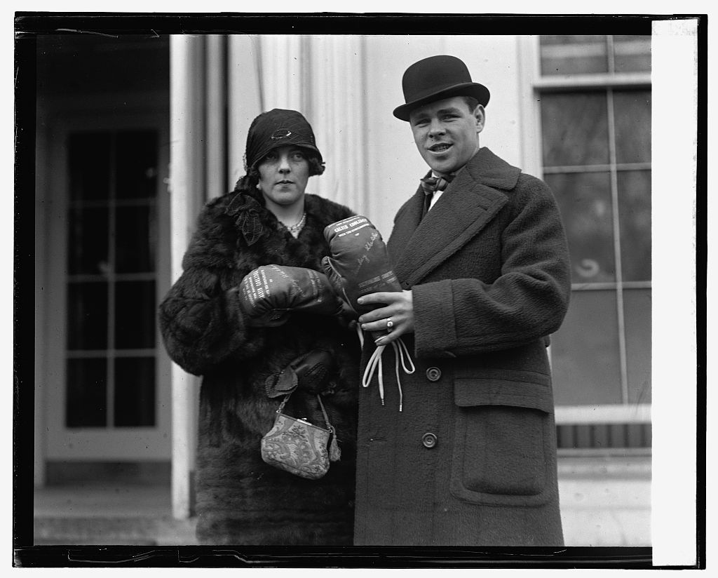 boxer Mickey Walker and wife at the White House to present gloves to Calvin Coolidge, February 5th, 1925
