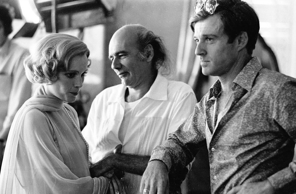 Mia Farrow, director Jack Clayton and Robert Redford on the set of The Great Gatsby in 1973.