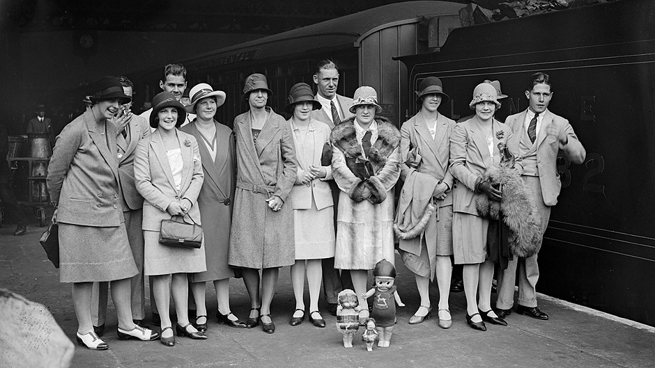 women of the British Olympic team on a railway platform, bound for the Olympic Games in Holland, 1928