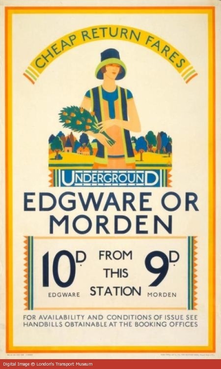 Edgware Or Morden poster by Kate M Burrell, published by Underground Electric Railway Company Ltd, 1928