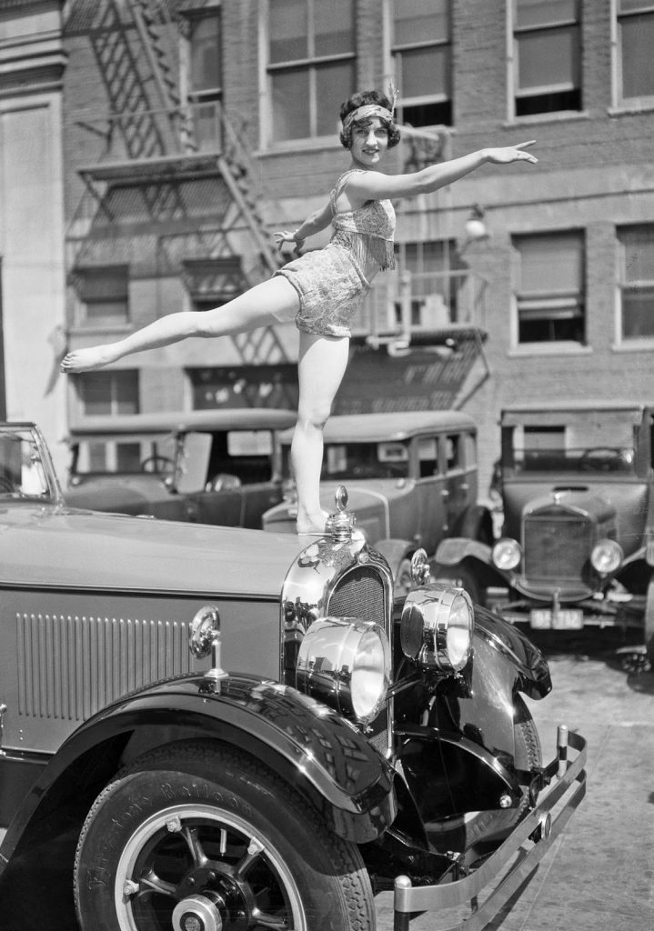 dancing on the radiator of a Marmon Motor Car, Southern California, 1926 photo by Dick Whittington