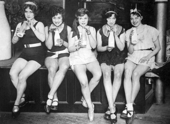 the dancers of the Alhambra Theatre drinking milk during a rehearsal In London, August 28, 1935
