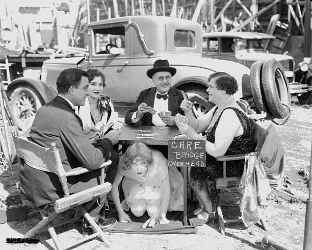Marion Davies plays around, while others play cards at MGM Studios, November 3, 1927