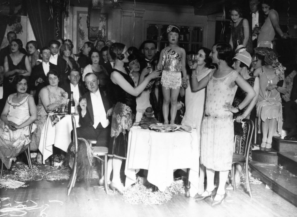 guests celebrate at a New Year’s Eve party at Deauville Restaurant on Regent Street in London, December 31, 1929 photo by J. A. Hampton