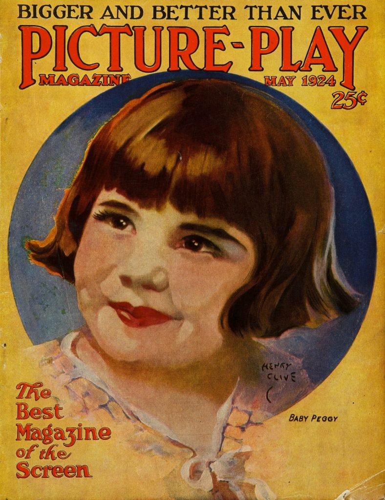 Baby Peggy is all smiles on the May 1924 cover of Picture-Play magazine art by Henry Clive