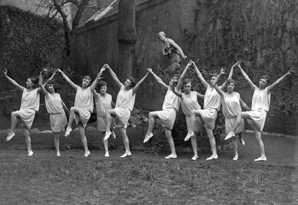 dancers from a professional school practice outside in a park in Brussels, Belgium in 1929