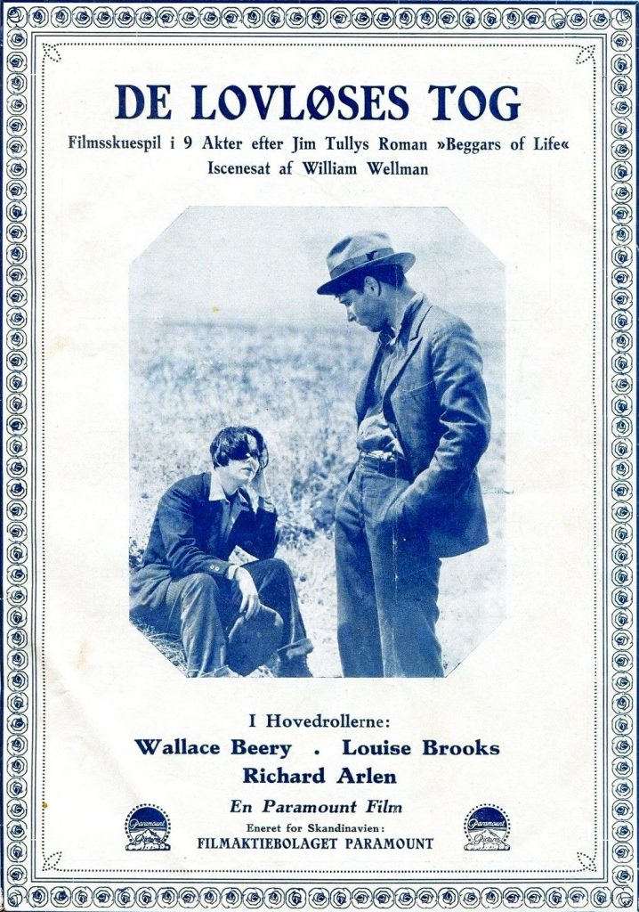 Louise Brooks and Richard Arlen are blue on the Danish movie program for 1928’s Beggars of Life