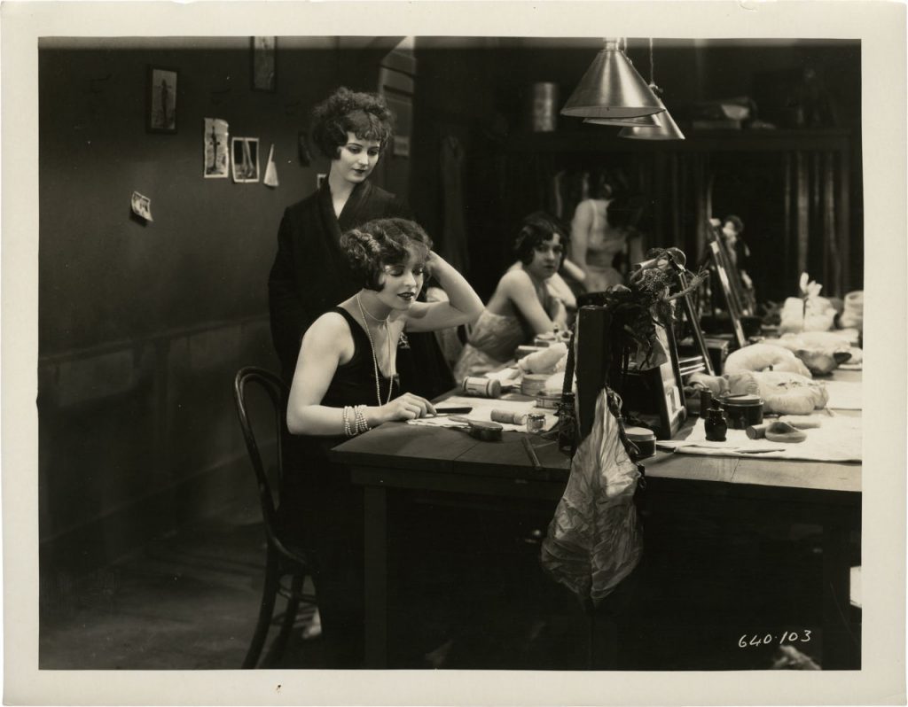 Doris Hill watches Clara Bow doll it up in 1927 Rough House Rosie