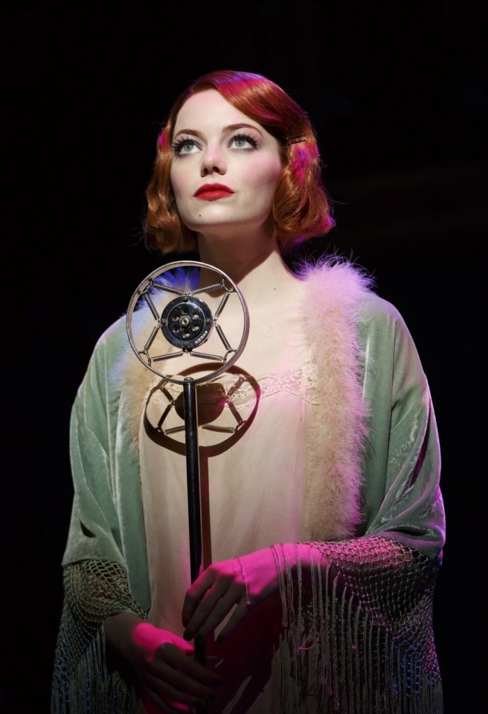 Emma Stone bedecked in a Cabaret costume. photo by Richard Phibbs