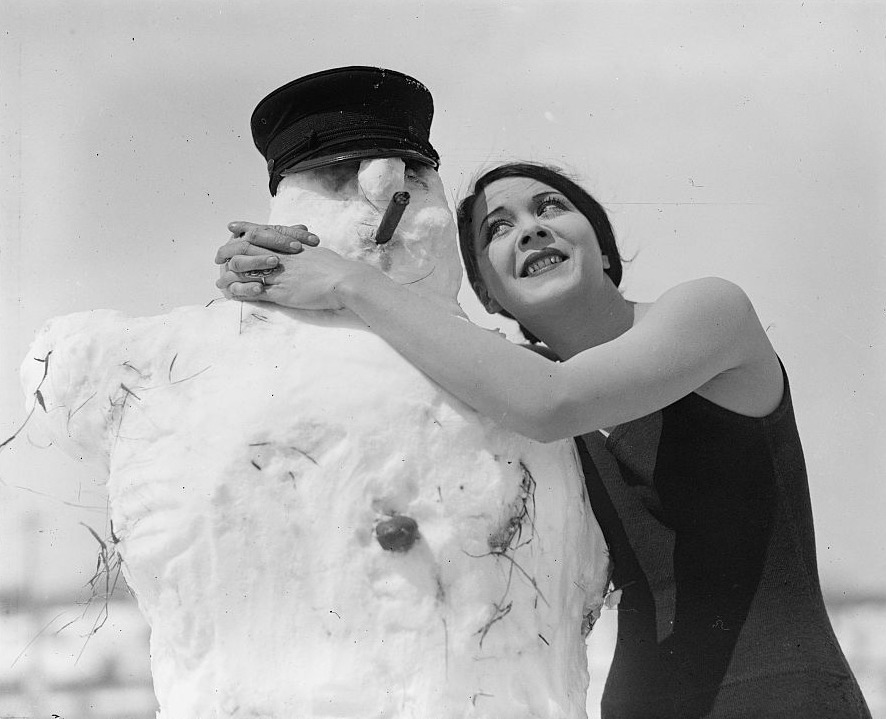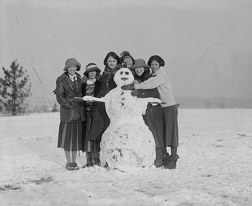 co-eds at Maryland State University get frosty with a snowman, February 8, 1923 stay warm everyone!!!