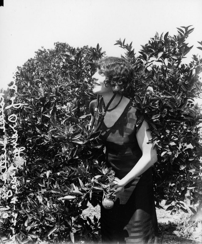 Evelyn Marie Roeder listening to heart throbs of orange tree, April 22, 1926. fo’real, she is, she’s even using a stethoscope
