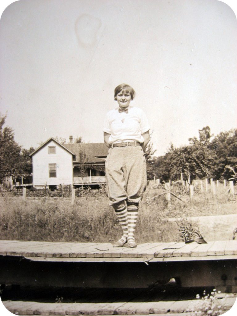 alwaysalwaysalwaysthesea: Edna (my grandmother) in bow tie, knickers, and striped stockings! 1920s.