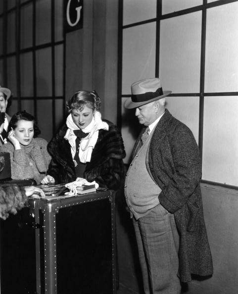 watched by her father, actress Sally Eilers plays cards between scenes on the set of the 1934′s Three on a Honeymoon