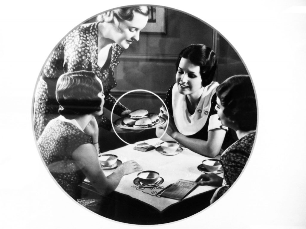 White Castle hamburgers are pictured being served at a family home, in the 1930s. It illustrates the restaurant chain’s effort to attract middle class customers and promote hamburgers as healthy […]